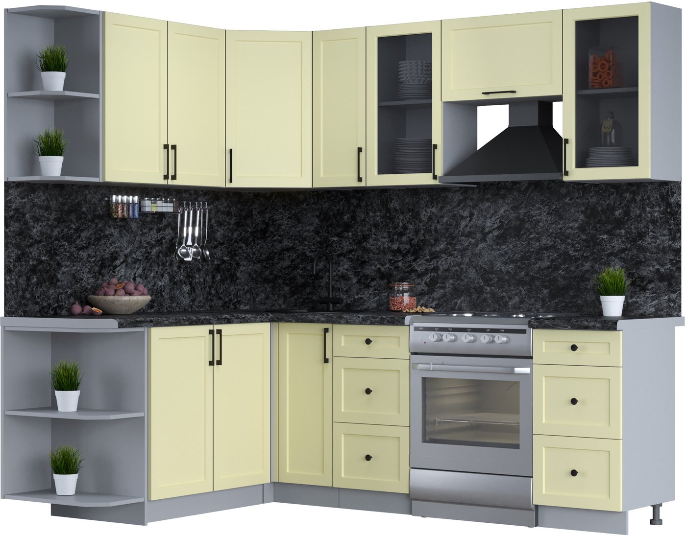 угловая, длина 230 см, ширина 170 см, каркас ЛДСП, фасад МДФ пленочный, установка мойки: врезная мойка