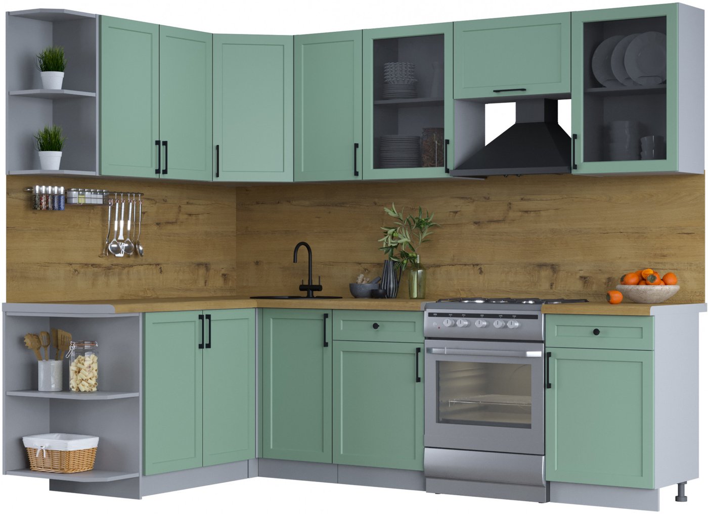 Готовая кухня Интерлиния Тренд 1.7x2.6 левая (мята/мята/дуб бунратти)
