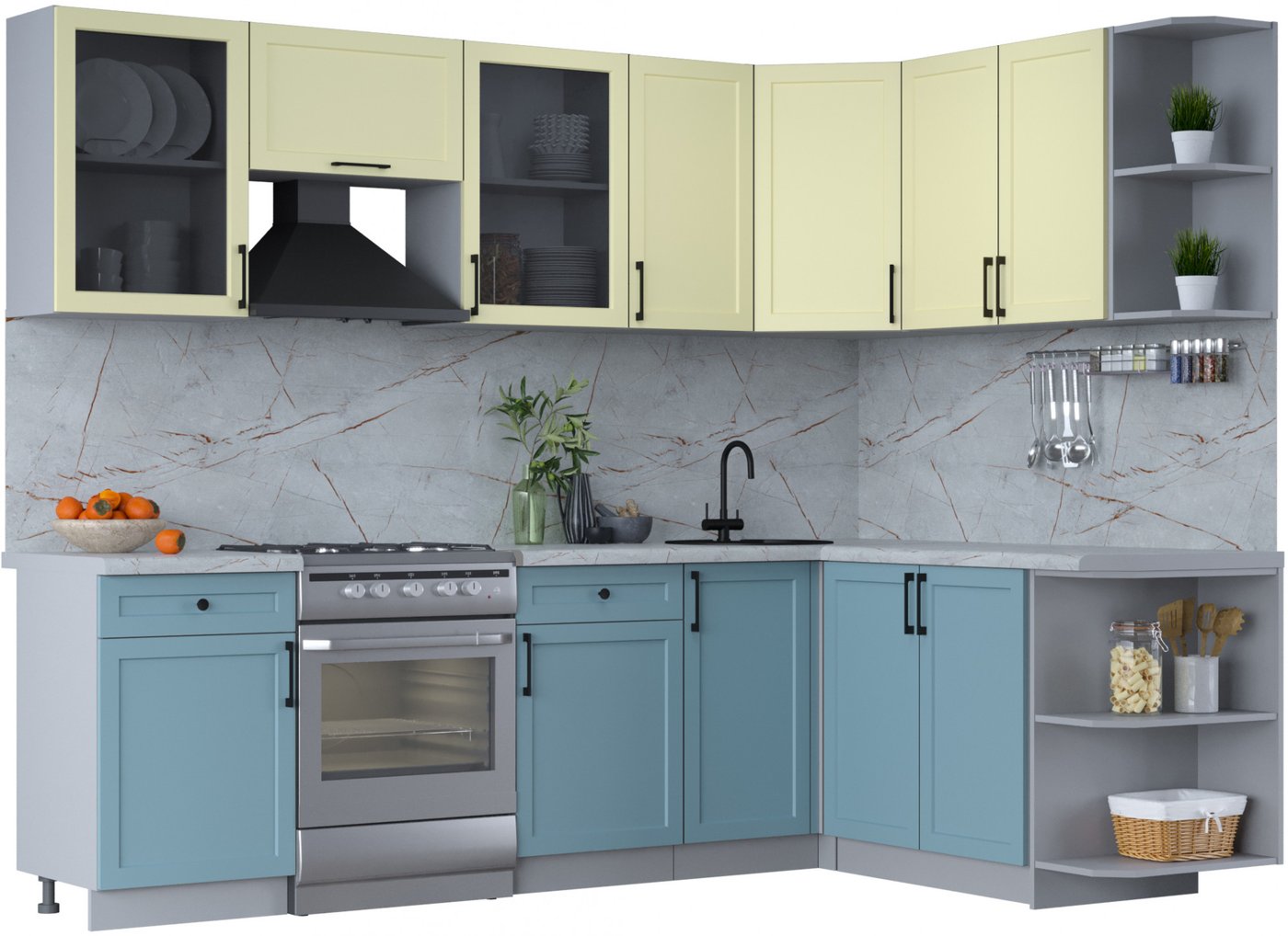 Готовая кухня Интерлиния Тренд 1.7x2.6 правая (океан/слоновая кость/серый каспий)