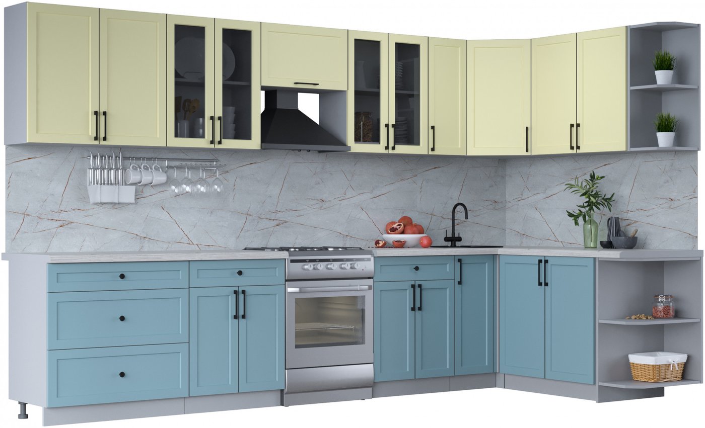 Готовая кухня Интерлиния Тренд 1.7x3.5 правая (океан/слоновая кость/серый каспий)