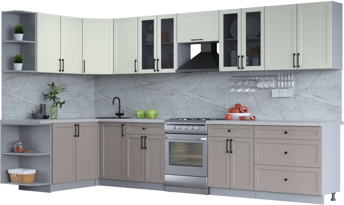 Готовая кухня Интерлиния Тренд 1.7x3.6 левая (луна/белый/серый каспий)