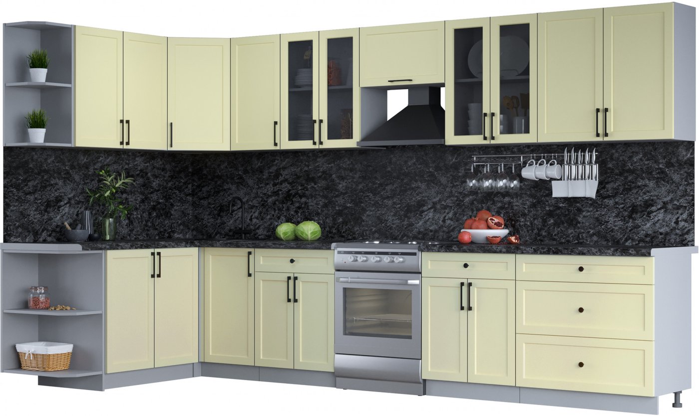 угловая, длина 360 см, ширина 170 см, каркас ЛДСП, фасад МДФ пленочный, установка мойки: врезная мойка