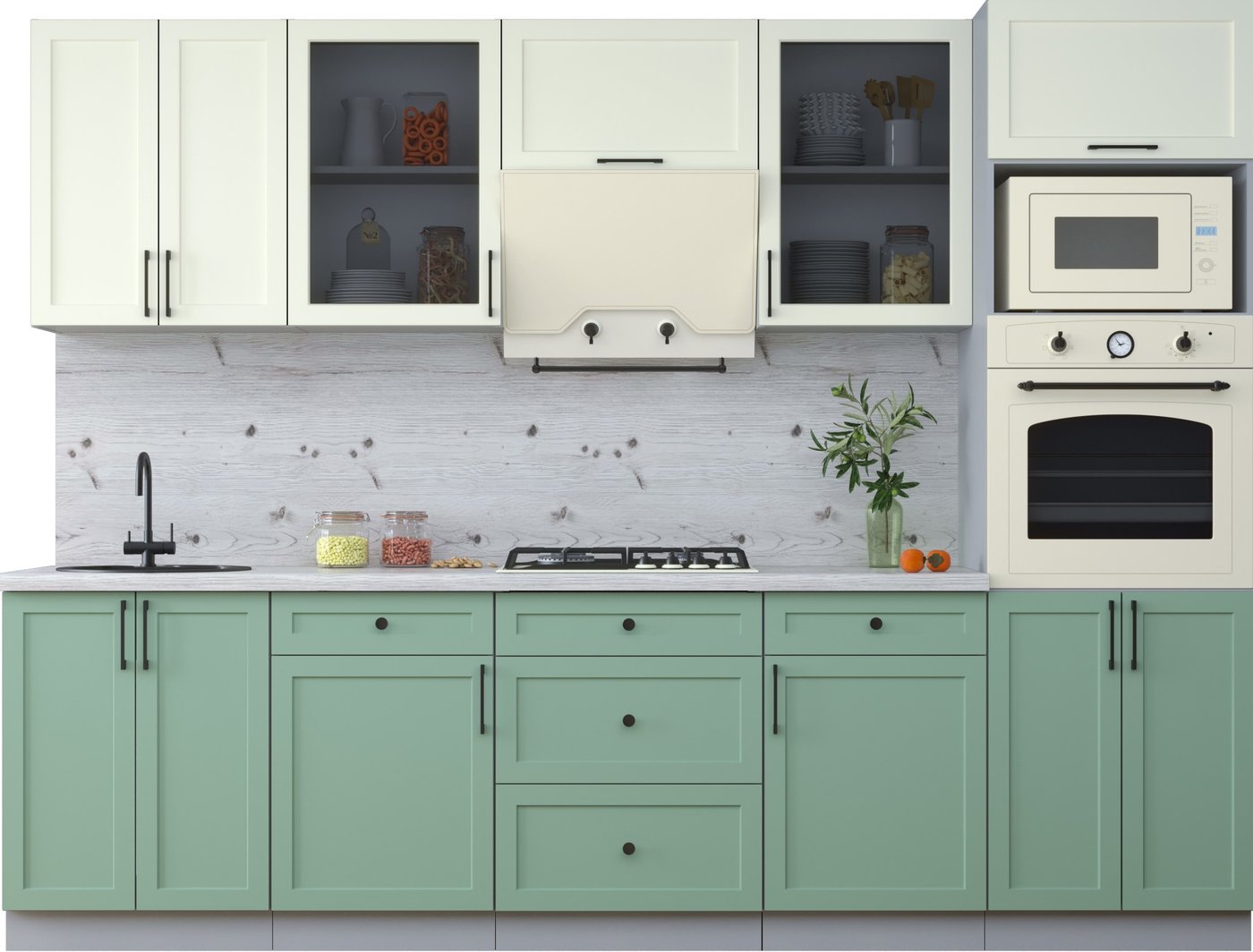 Готовая кухня Интерлиния Тренд 2.8В (мята/белый/бискайская сосна)