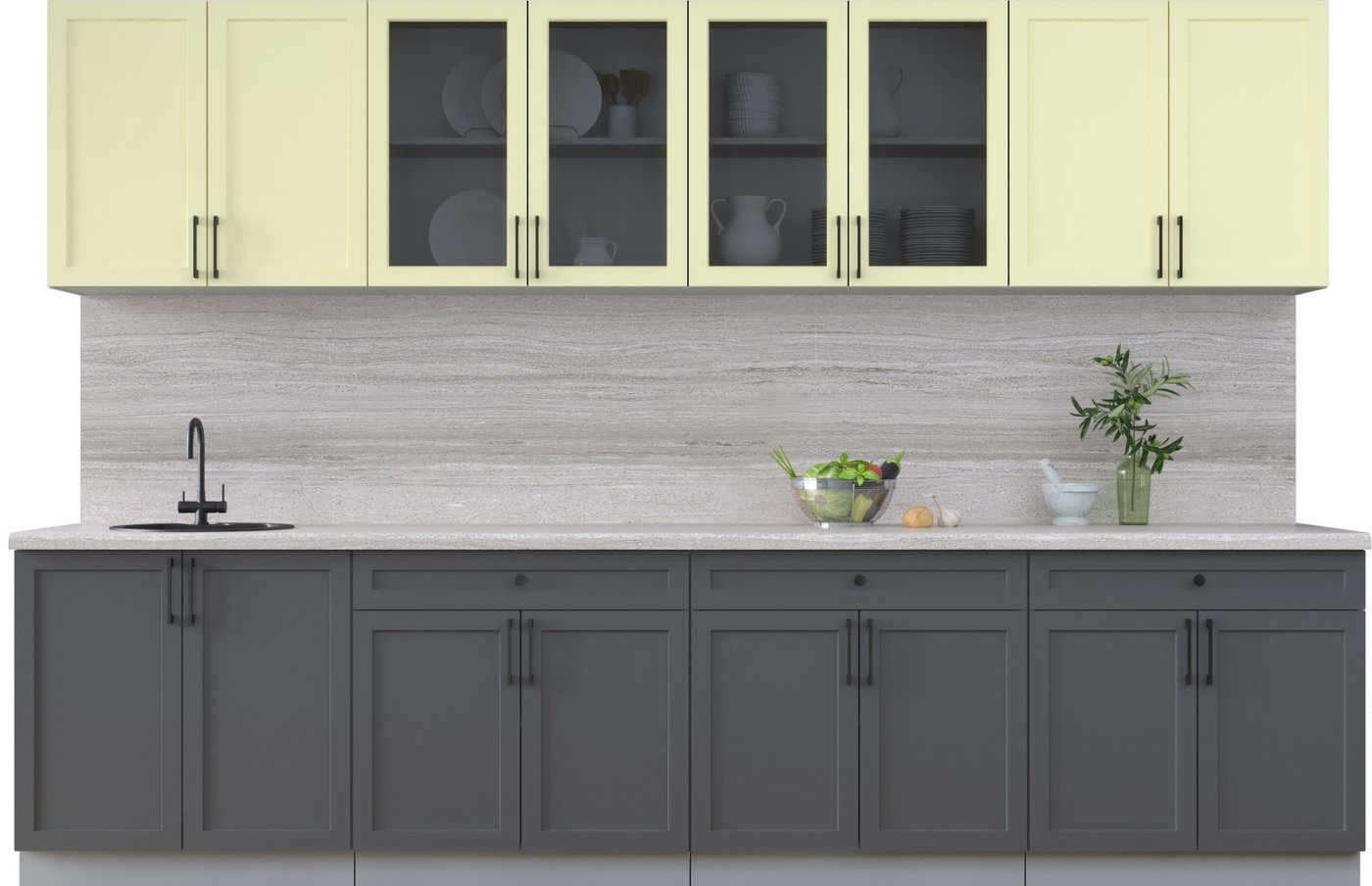 Готовая кухня Интерлиния Тренд 3.2А (пепел/слоновая кость/травертин серый)