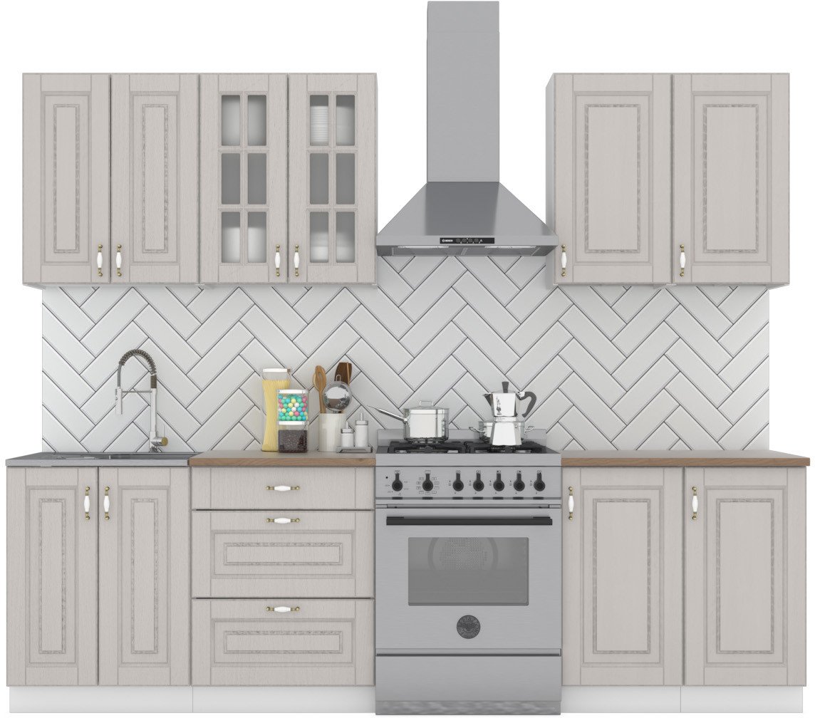 линейная, длина 200 см, ширина 60 см, каркас ЛДСП, фасад МДФ пленочный, установка мойки: накладная мойка, ширина шкафа под мойку 60 см