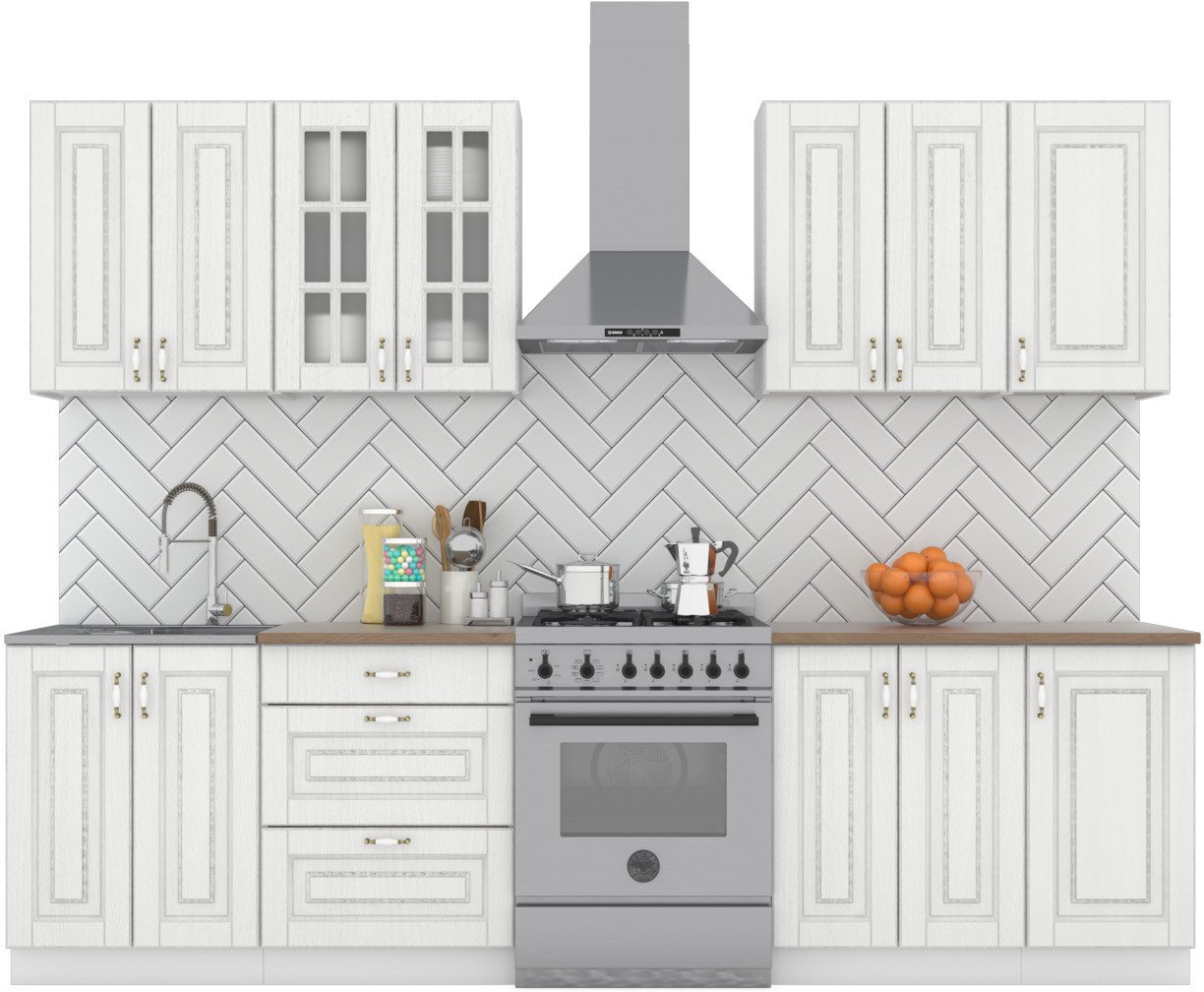 Готовая кухня Интермебель Бостон-7 2.2м (акация белая/дуб флагстаф темный)
