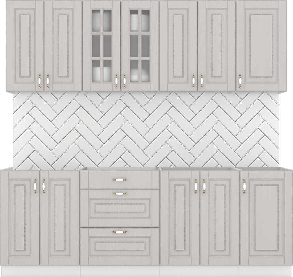 линейная, длина 220 см, ширина 60 см, каркас ЛДСП, фасад МДФ пленочный, установка мойки: накладная мойка, ширина шкафа под мойку 60 см