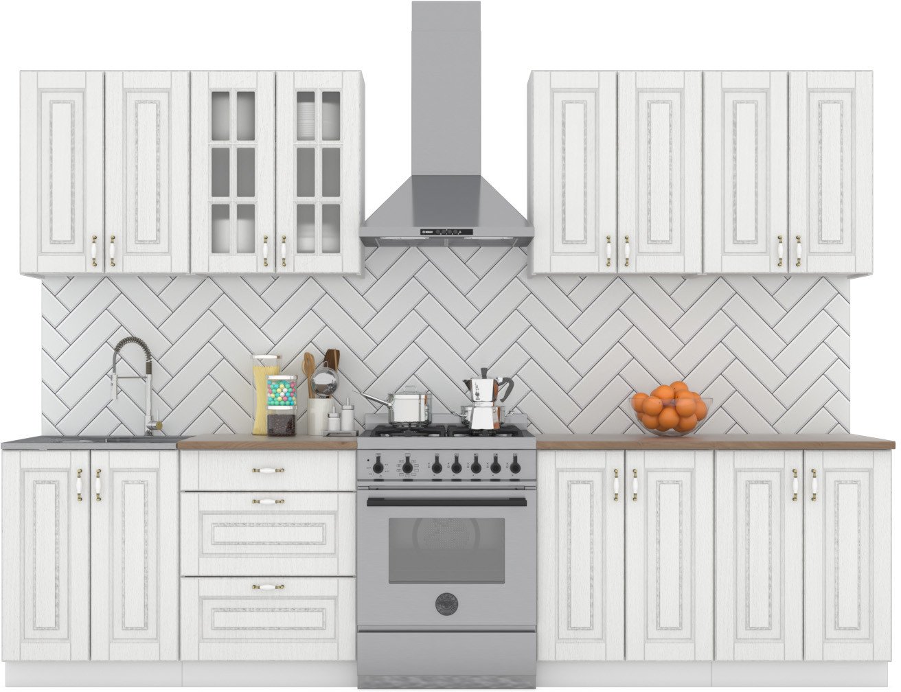 линейная, длина 240 см, каркас ЛДСП, фасад МДФ пленочный, установка мойки: накладная мойка, ширина шкафа под мойку 60 см