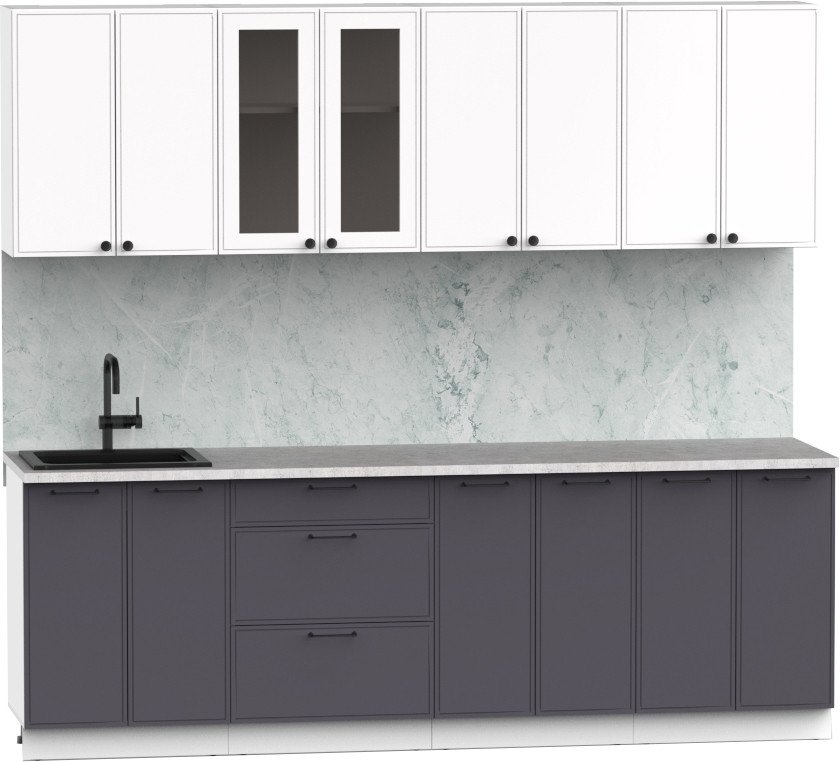 Готовая кухня Интермебель Лион-18 В-1 2.4м (белый софт/графит софт/мрамор лацио белый)