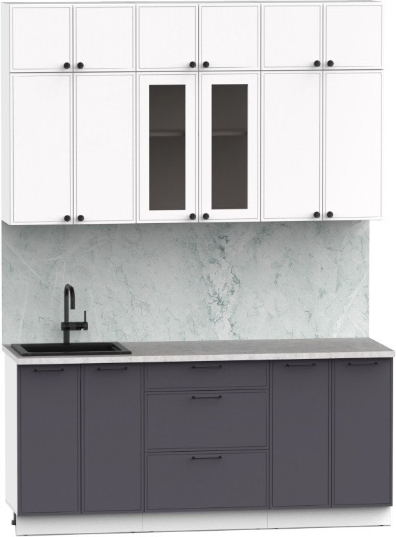 Готовая кухня Интермебель Лион-4 В-1 1.8м (белый софт/графит софт/мрамор лацио белый)