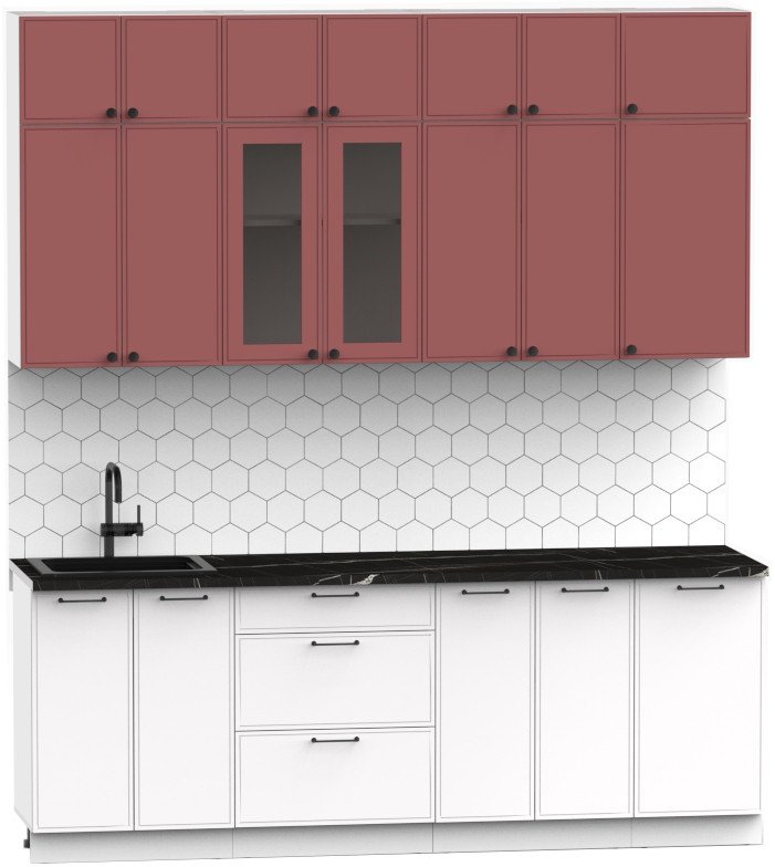 Готовая кухня Интермебель Лион-7 В-1 2.2м (красная глазурь софт/белый софт/тунис)