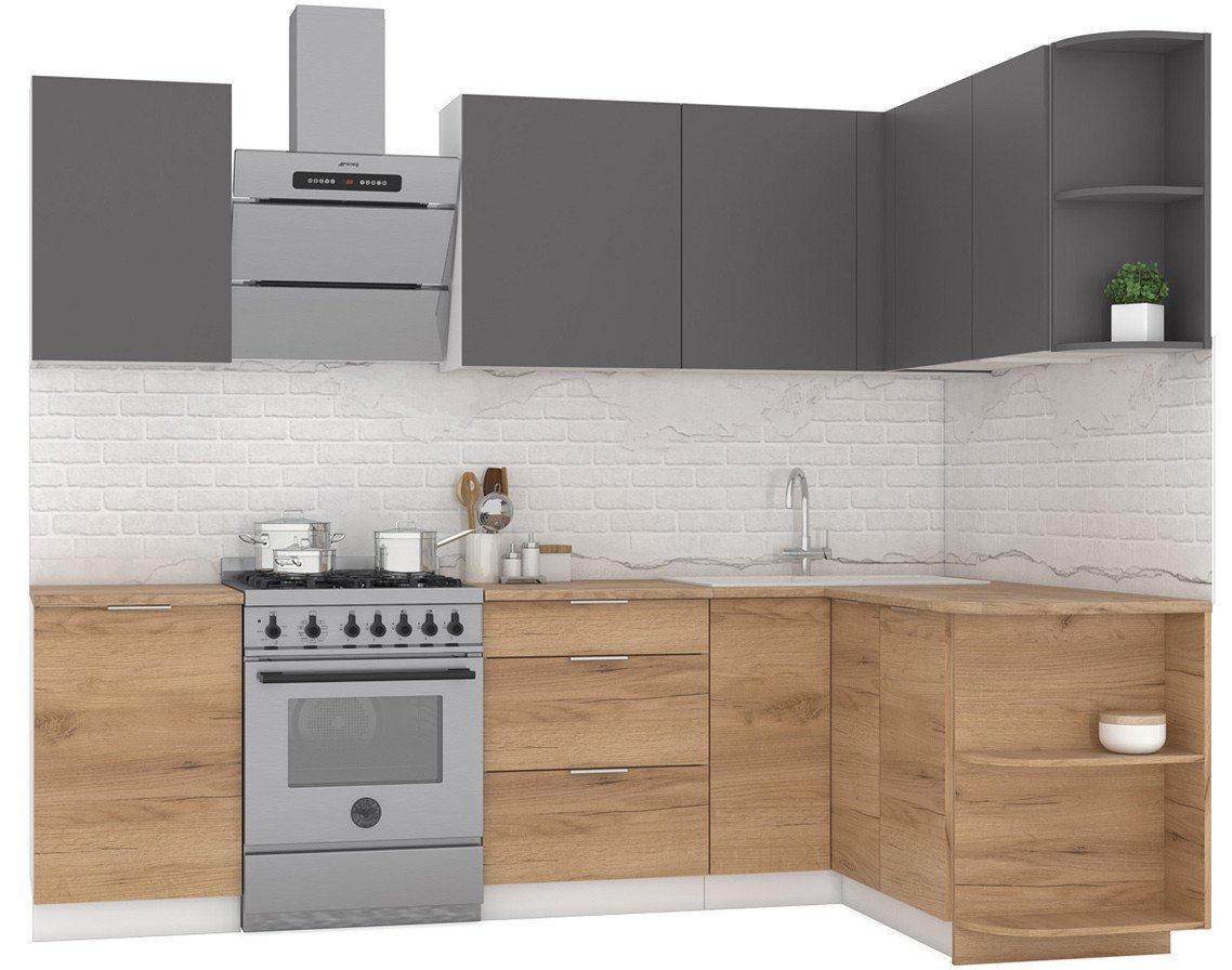 Готовая кухня Интермебель Микс Топ-12 2.0x1.5м правая (графит серый/дуб крафт золотой/дуб вотан)