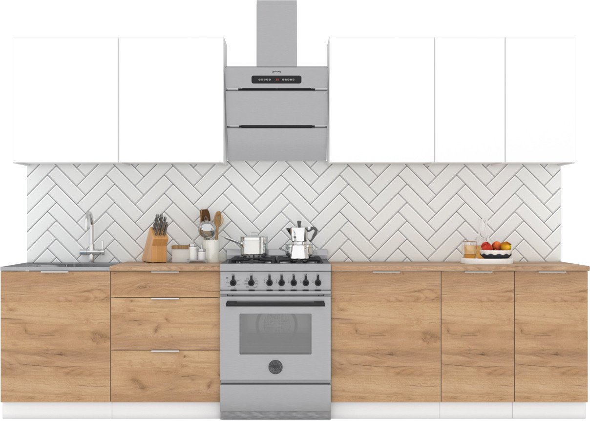Готовая кухня Интермебель Микс Топ-9 2.6м (белый премиум/дуб крафт золотой/мрамор лацио белый)