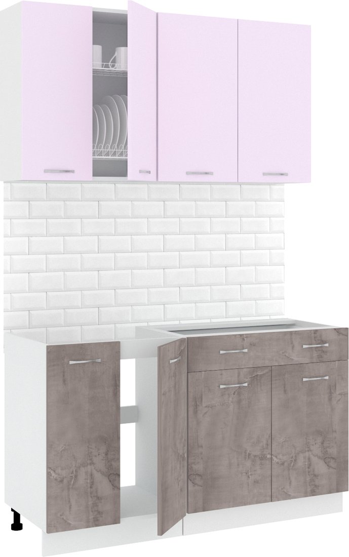 Готовая кухня Кортекс-мебель Корнелия Лира-лайт км.02464 1.4 м без столешницы (сирень/оникс)