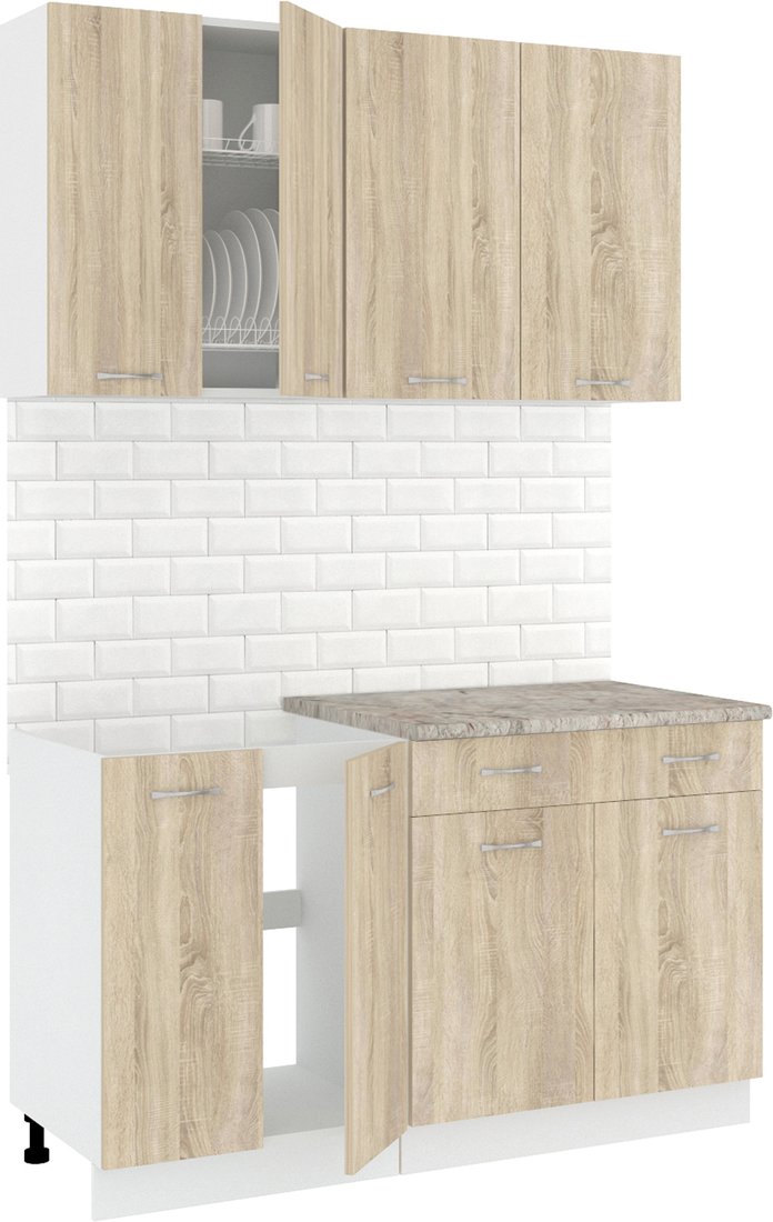 Готовая кухня Кортекс-мебель Корнелия Лира-лайт км.02464 1.4 м (дуб сонома/дуб сонома/марсель)