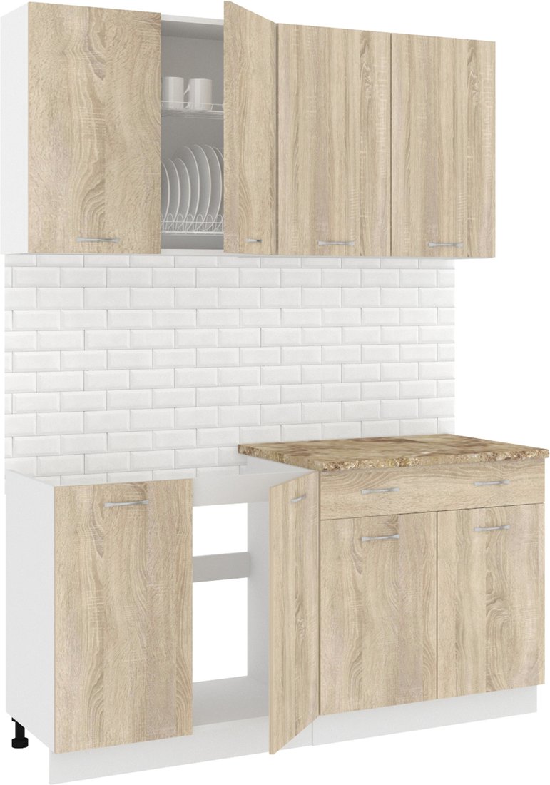Готовая кухня Кортекс-мебель Корнелия Лира-лайт км.02518 1.6 м (дуб сонома/дуб сонома/мадрид)