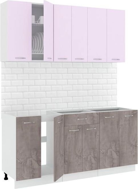 Готовая кухня Кортекс-мебель Корнелия Лира-лайт 1.7м без столешницы (сирень/оникс)