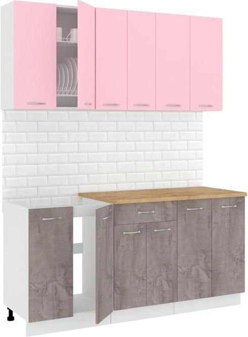 Готовая кухня Кортекс-мебель Корнелия Лира-лайт 1.7м (розовый/оникс/дуб бунратти)