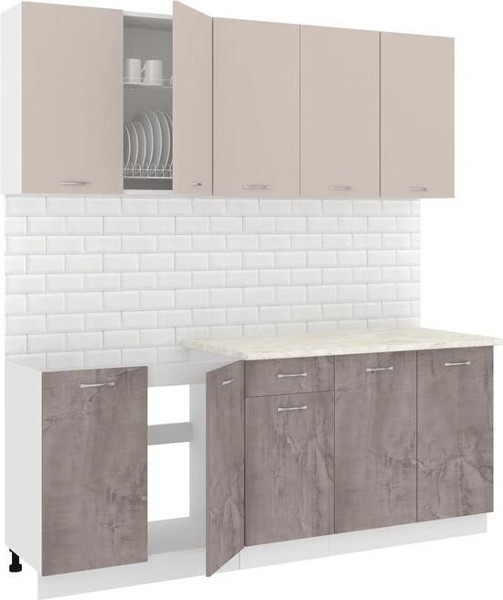 линейная, длина 200 см, ширина 60 см, каркас ЛДСП, фасад ЛДСП, установка мойки: накладная мойка, ширина шкафа под мойку 80 см