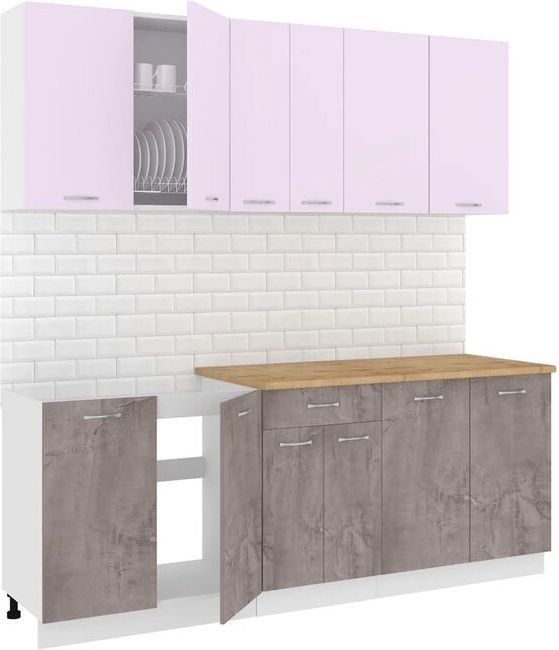 Готовая кухня Кортекс-мебель Корнелия Лира-лайт 2.1м (сирень/оникс/дуб бунратти)