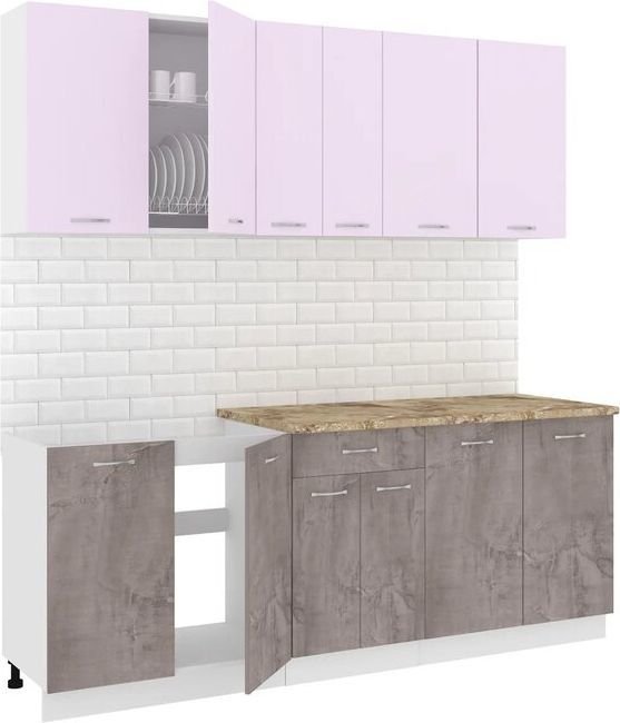 Готовая кухня Кортекс-мебель Корнелия Лира-лайт 2.1м (сирень/оникс/мадрид)