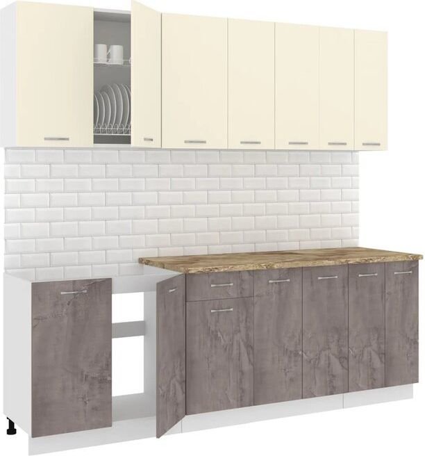 Готовая кухня Кортекс-мебель Корнелия Лира-лайт 2.3м (крем/оникс/мадрид)