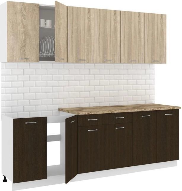 Готовая кухня Кортекс-мебель Корнелия Лира-лайт 2.4м (дуб сонома/венге/мадрид)