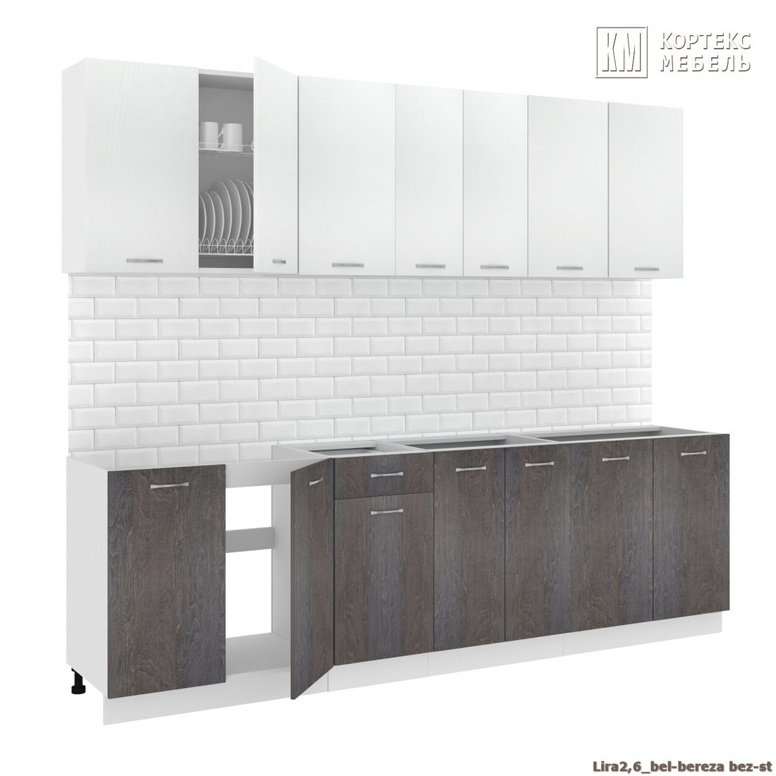 Готовая кухня Кортекс-мебель Корнелия Лира-лайт 2.6м без столешницы (белый/береза)