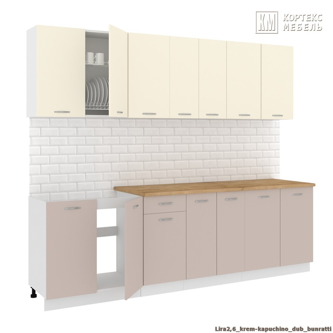 Готовая кухня Кортекс-мебель Корнелия Лира-лайт 2.6м (крем/капучино/дуб бунратти)
