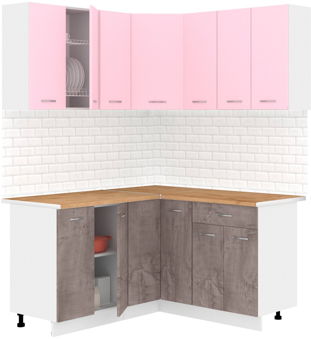 Готовая кухня Кортекс-мебель Корнелия Лира 1.5x1.5 (розовый/оникс/дуб бунратти)