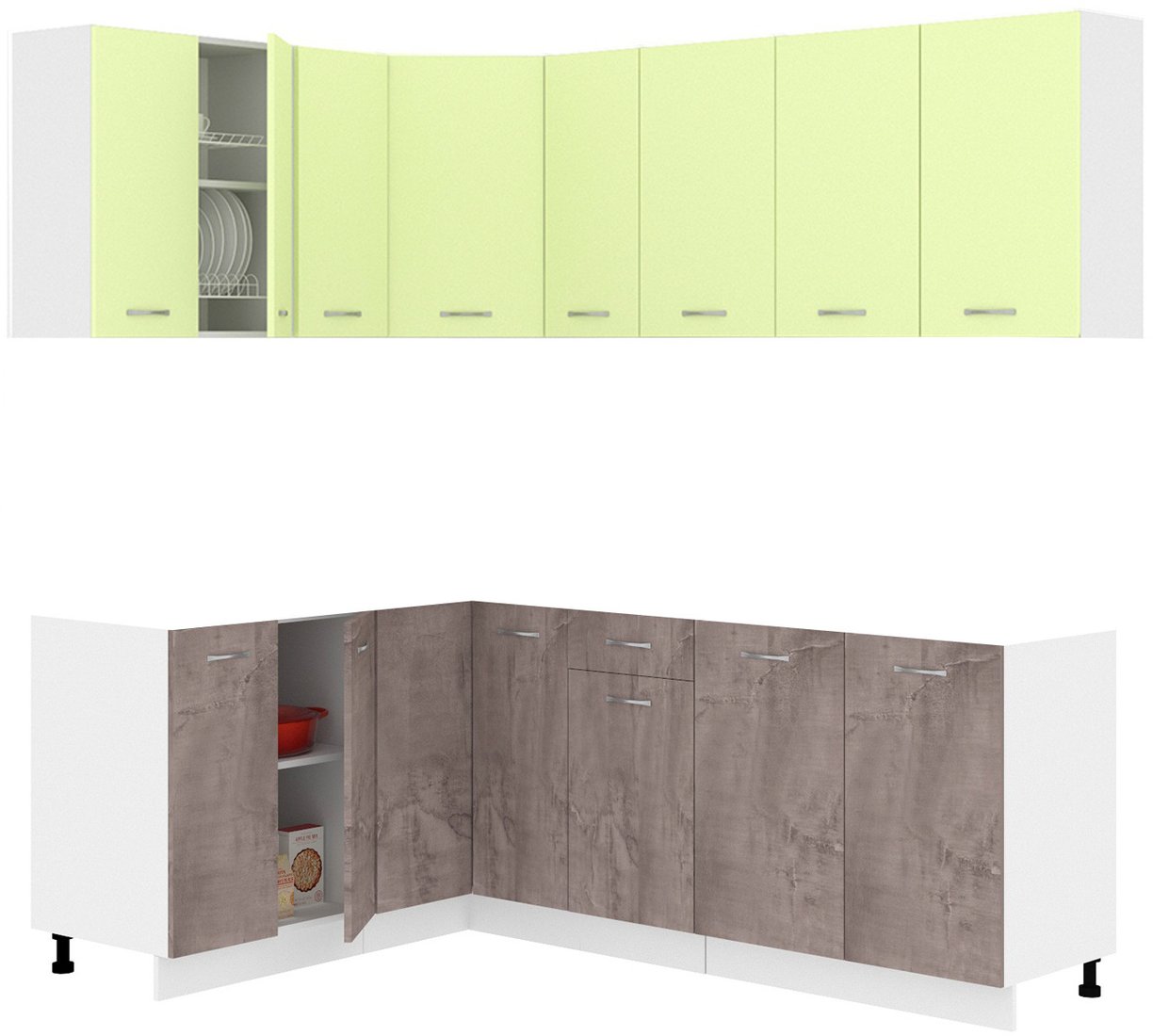 Готовая кухня Кортекс-мебель Корнелия Лира 1.5x2.1 без столешницы (салатовый/оникс)