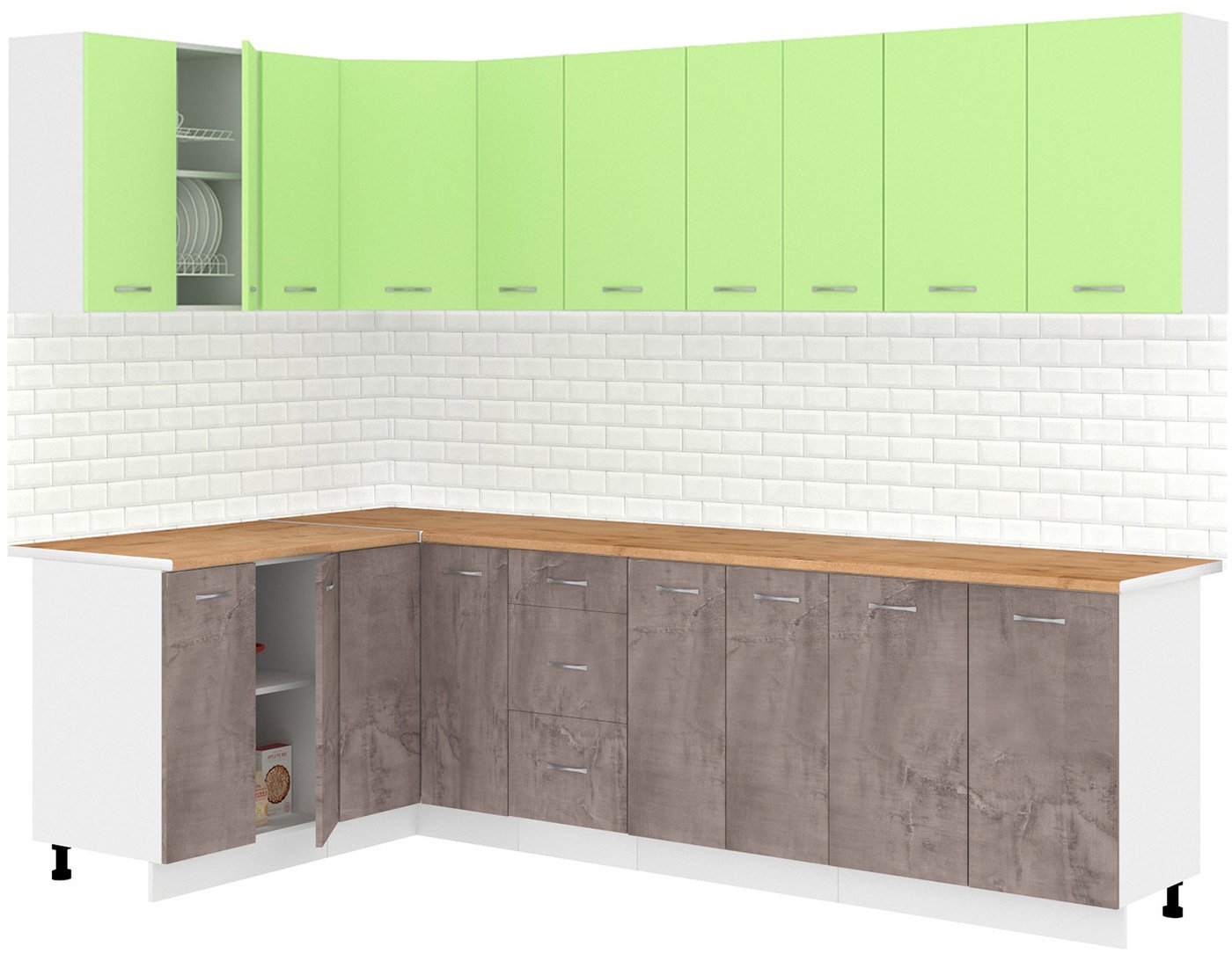 Готовая кухня Кортекс-мебель Корнелия Лира 1.5x2.7 (зеленый/оникс/дуб бунратти)