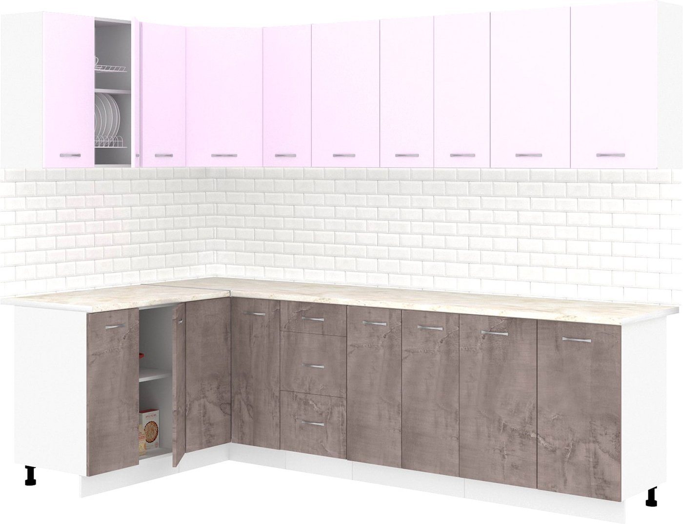 Готовая кухня Кортекс-мебель Корнелия Лира 1.5x2.7 (сирень/оникс/королевский опал)