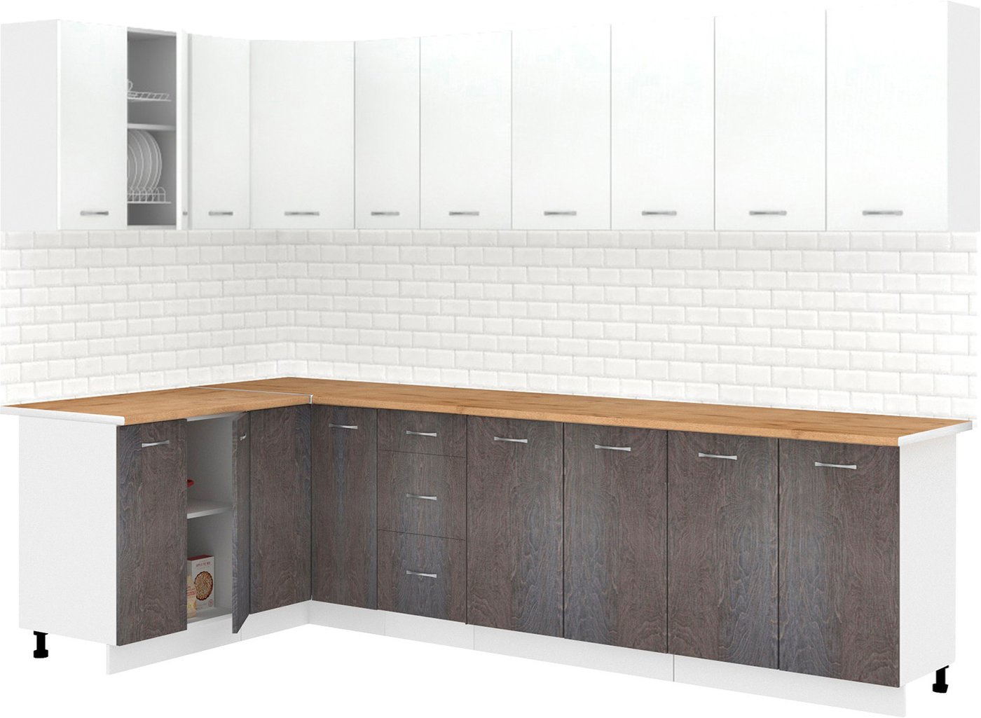 Готовая кухня Кортекс-мебель Корнелия Лира 1.5x2.9 (белый/береза/дуб бунратти)