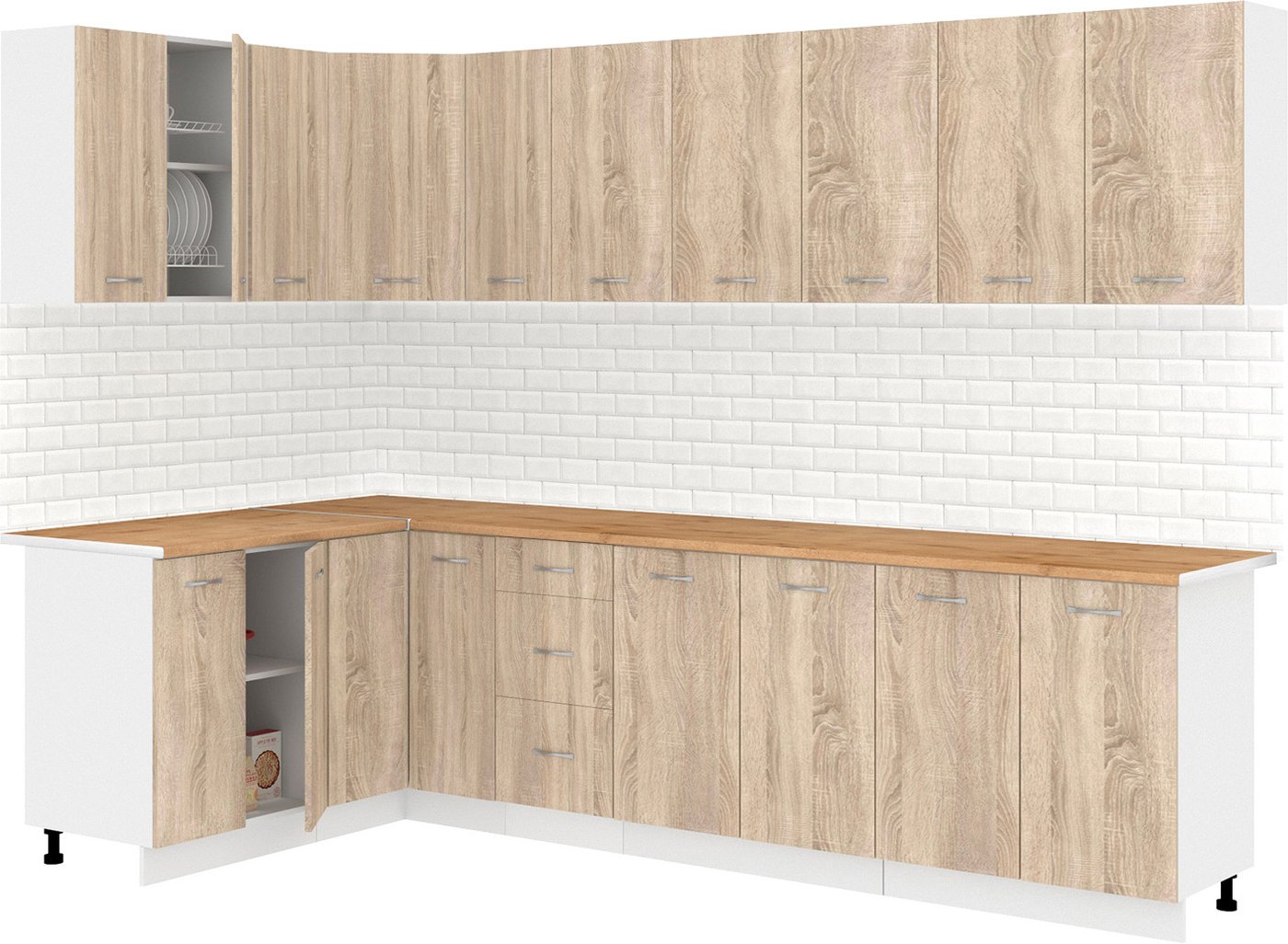 Готовая кухня Кортекс-мебель Корнелия Лира 1.5x2.9 (дуб сонома/дуб бунратти)