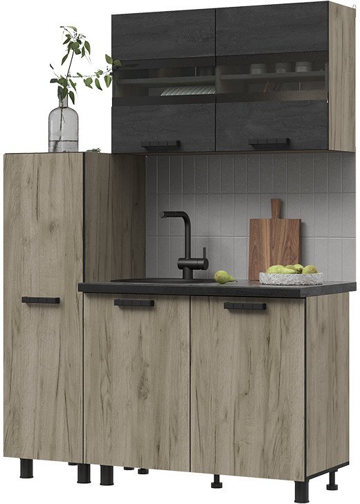 Готовая кухня Стендмебель Эдинбург 1.4 с пеналом (железный камень/дуб крафт серый)