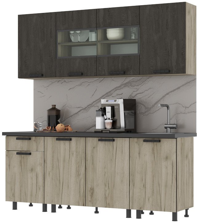 линейная, длина 200 см, ширина 60 см, каркас ЛДСП, фасад ЛДСП, установка мойки: врезная мойка, ширина шкафа под мойку 50 см