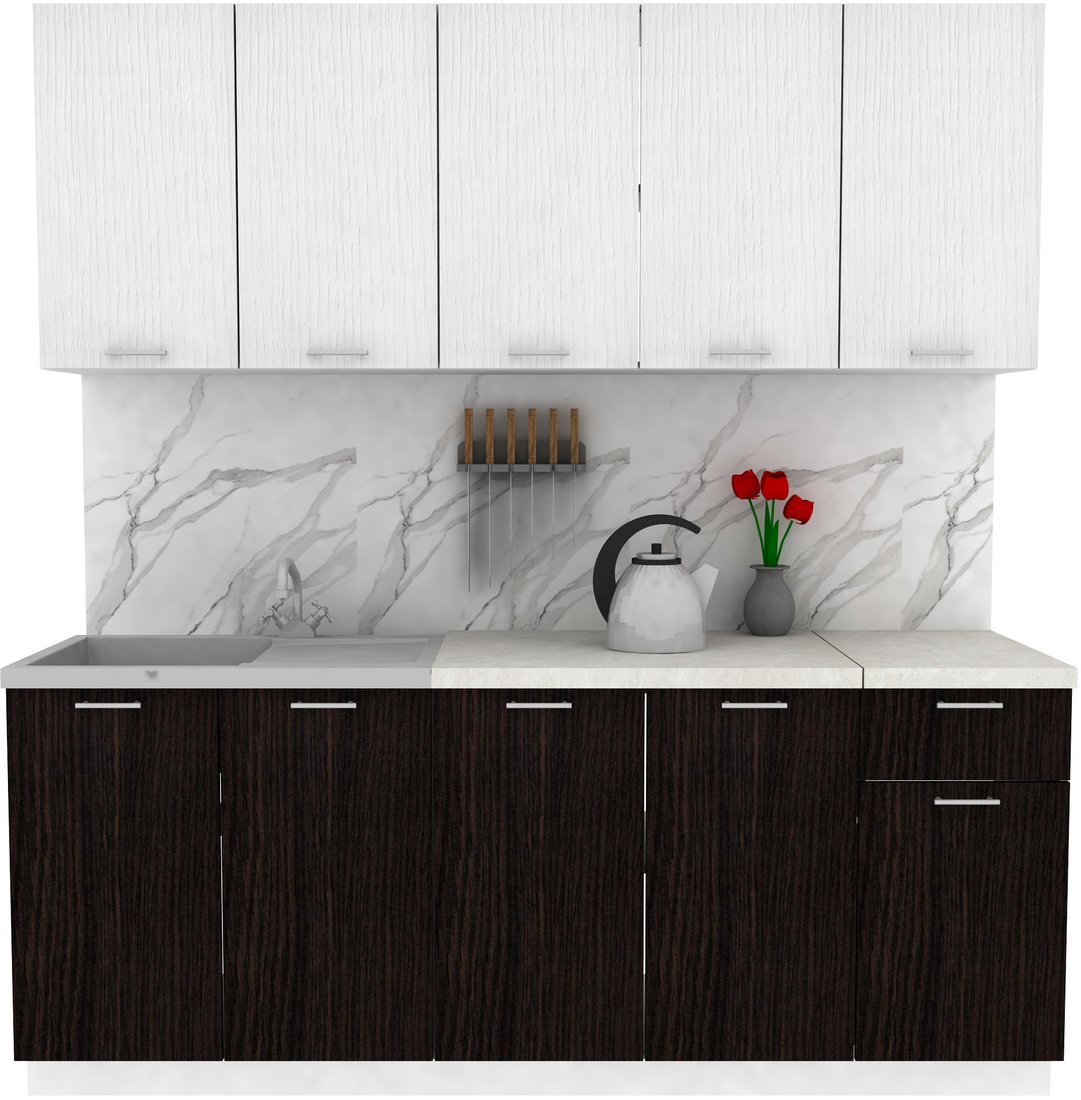 линейная, длина 200 см, ширина 60 см, каркас ЛДСП, фасад ЛДСП, установка мойки: накладная мойка, ширина шкафа под мойку 80 см