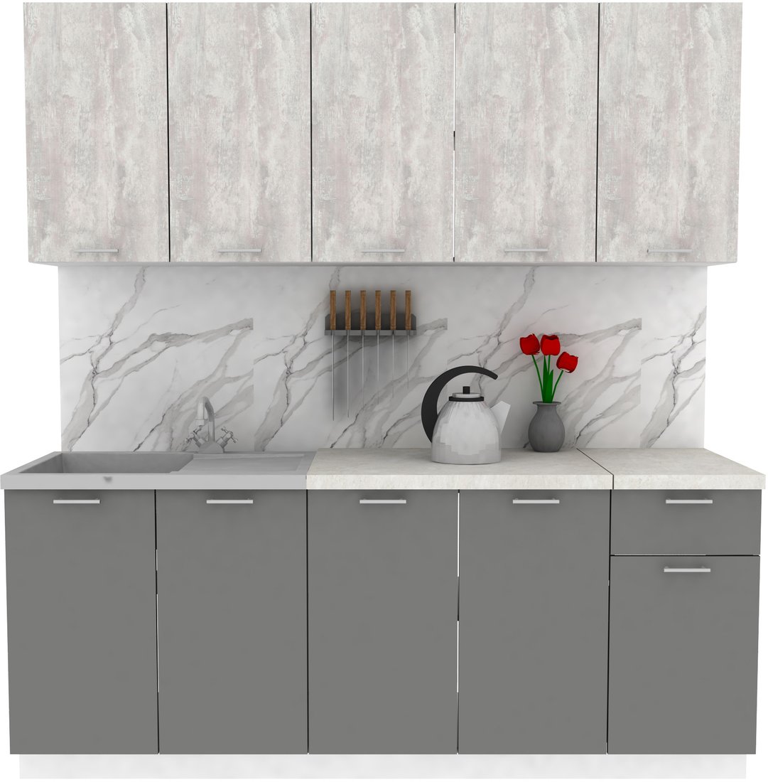 линейная, длина 200 см, ширина 60 см, каркас ЛДСП, фасад ЛДСП, установка мойки: накладная мойка, ширина шкафа под мойку 80 см