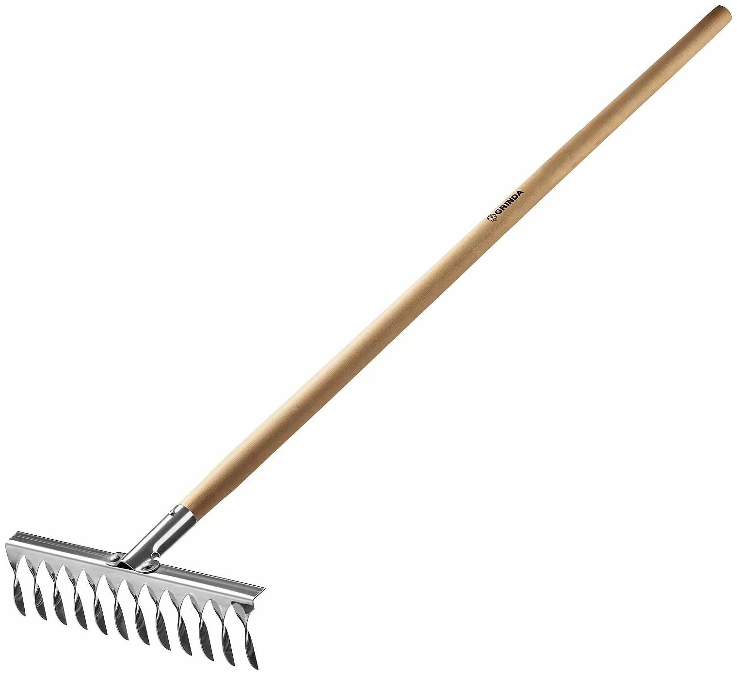 Грабли GRINDA PROLine, прямые, 37 см, 12 зубов, с черенком, материал черенка: дерево (39481-12)