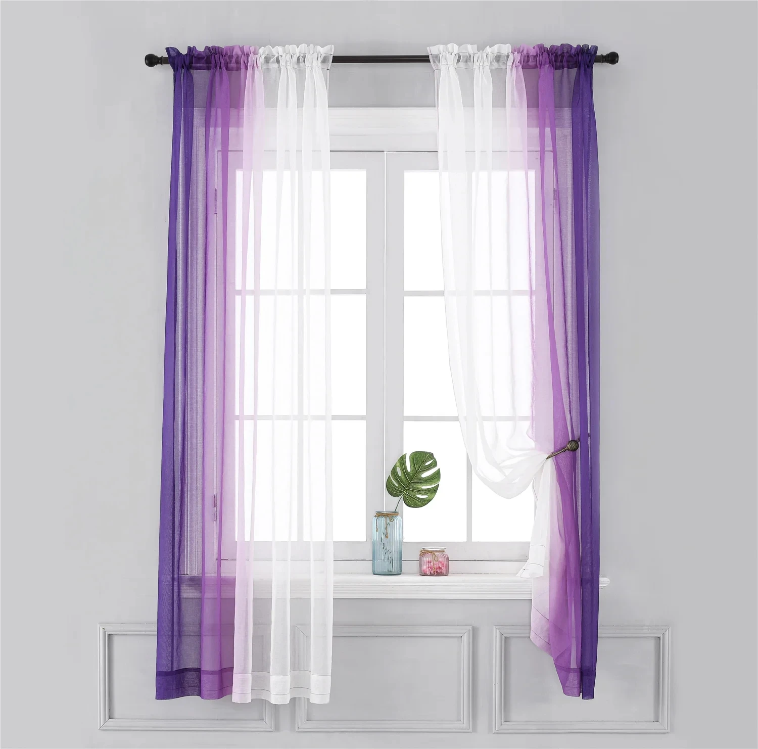 Градиентные прозрачные шторы для гостиной, модные тюлевые полупрозрачные, 1 шт., на заказ, синие, черные, белые, дешевые оконные экраны