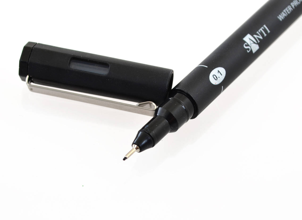 Графический линер Santi Fine Line. Цвет: черный. Толщина линии: 0,1 мм. Предназначен для рисования, черчения и письма.В наборе 15 шт. Водостойкие мелкопигментные чернила обеспечивают четкую непрерывную линию, которая не теряет цвета под воздействием воздуха, света и влаги. Ручка имеет черный пластиковый корпус, наконечник из акрила, металлический клип и прозрачное окошко на колпачке.