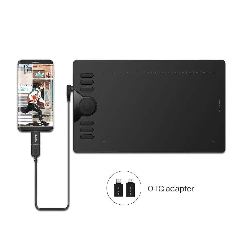 Графический планшет Huion Newest HS610 10x6 дюймов, цифровой планшет для рисования с безбатарейным стилусом для Android, Windows, macOS + OTG