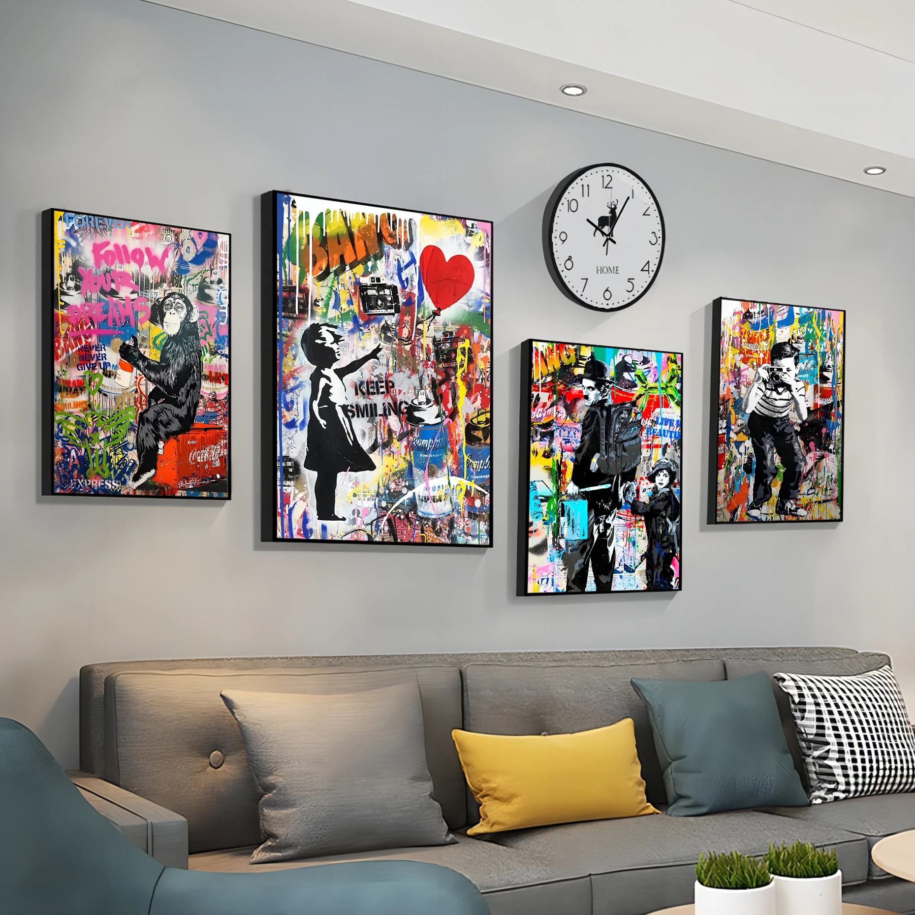 Граффити Бэнкси, самоклеящаяся картина в скандинавском стиле, Постер для творчества, декоративная картина, настенное искусство, белая крафт-бумага, домашний декор