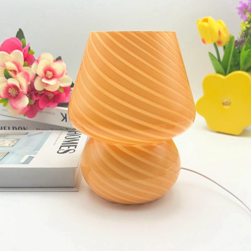Гриб Настольная лампа Украшение для домашнего интерьера Спальня Рядом с гостиной Стеклянный креативный декор рабочего стола Простое ночное освещение оранжевый