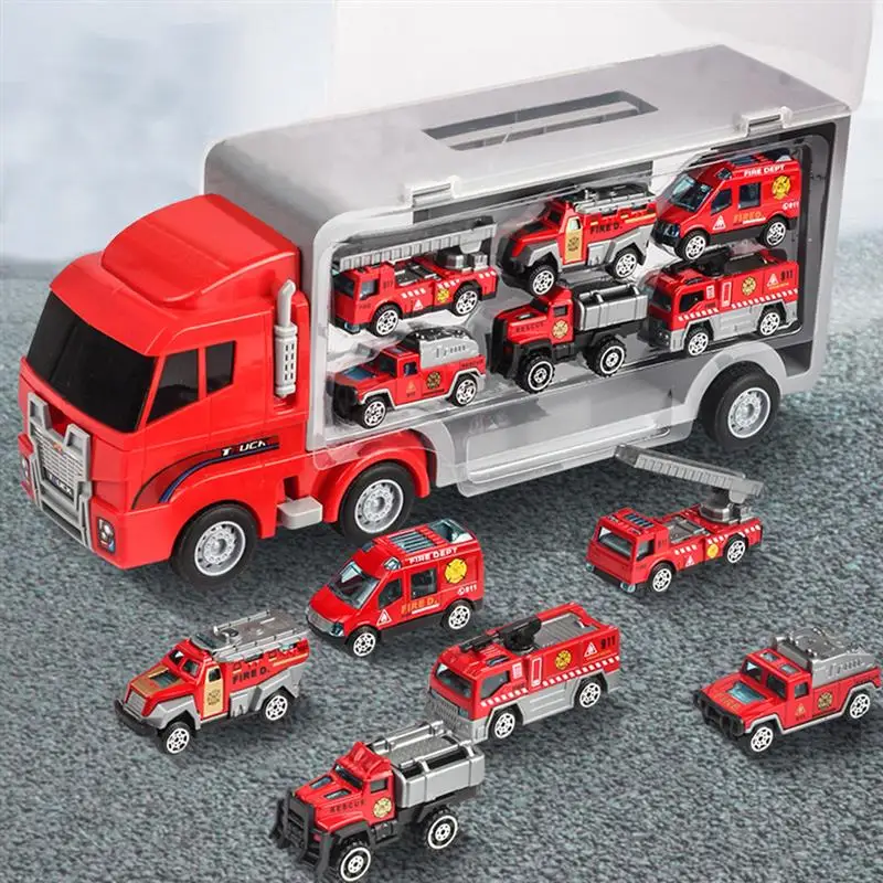 Грузовик-контейнер для хранения пожарной машины инженерный грузовик автомобиль из сплава игрушечный автомобиль для детей Рождественский ...