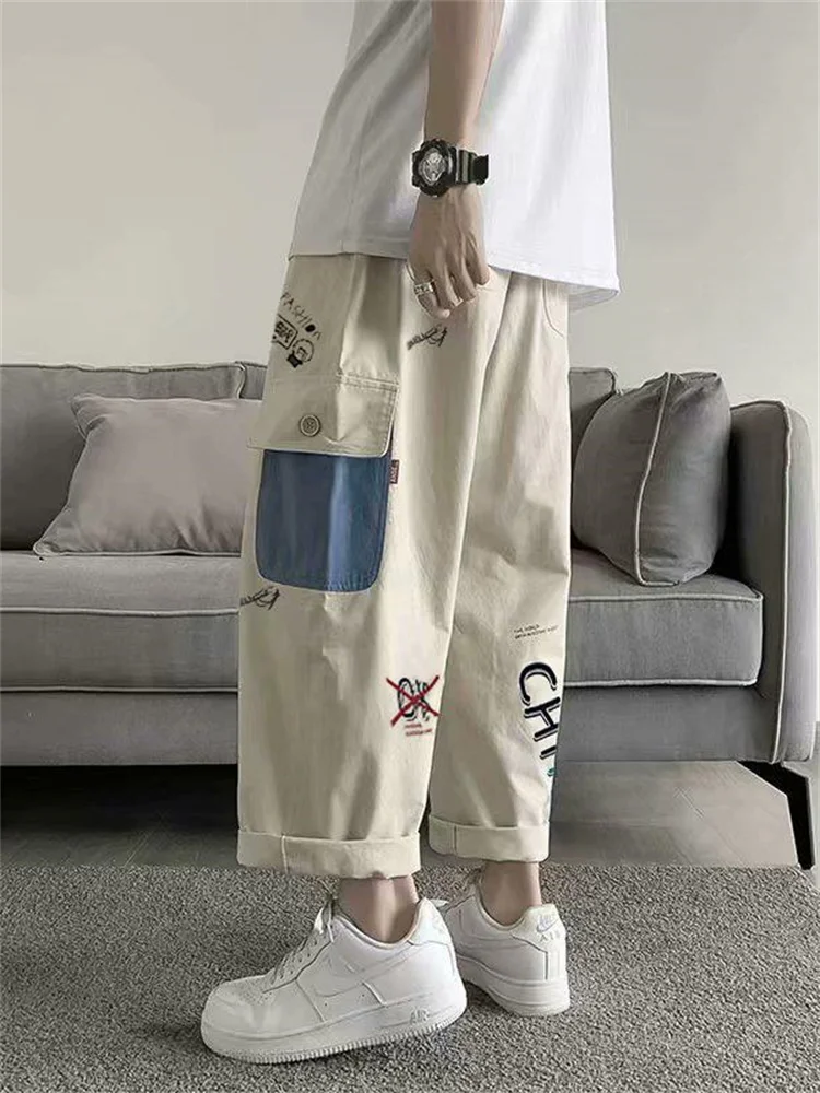 American Streetwear Baggy Casual Pants Mens Letter Printed Loose Retro Vintage High Street Daddy Pants Safari Style Cargo Pants