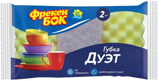Губка для мытья посуды Фрекен Бок» Дуэт профилированная, 2 шт