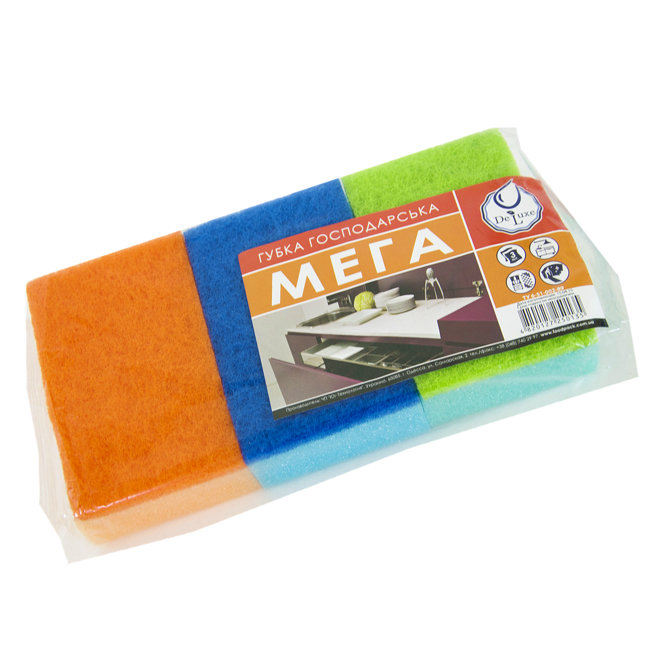 Губка хозяйственная "Deluxe" MEGA 3 шт.