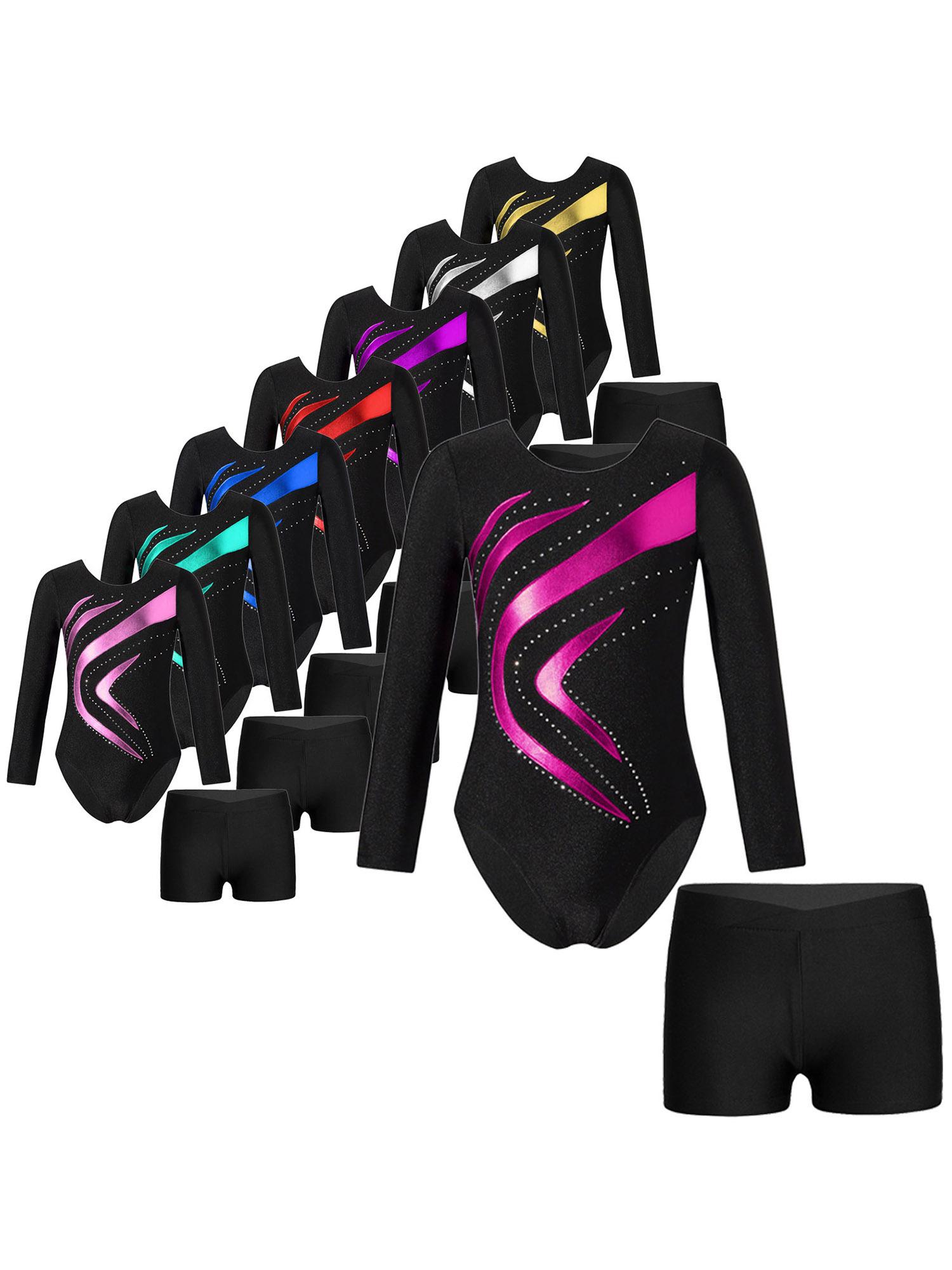 Гімнастичне купальник для дівчаток з довгим рукавом Танцювальне трико Балетне катання Сценічний танцювальний костюм 5-6 Years срібний